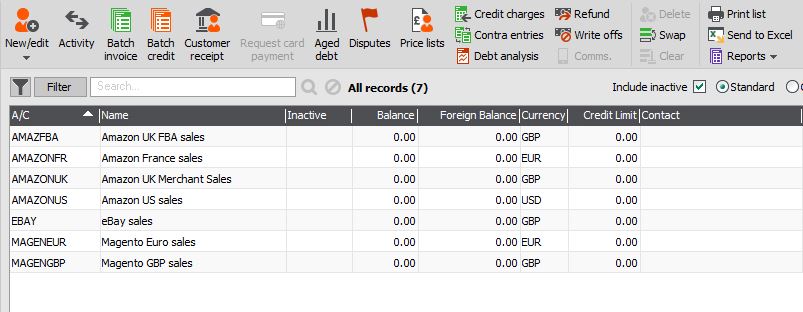 If the channel you are connecting to in Tradebox is in a foreign currency (like Amazon Germany, France or Italy) and you are going to account for these sales in their native currency in Sage, make sure you configure the currency in the customer record > defaults tab to the appropriate currency.