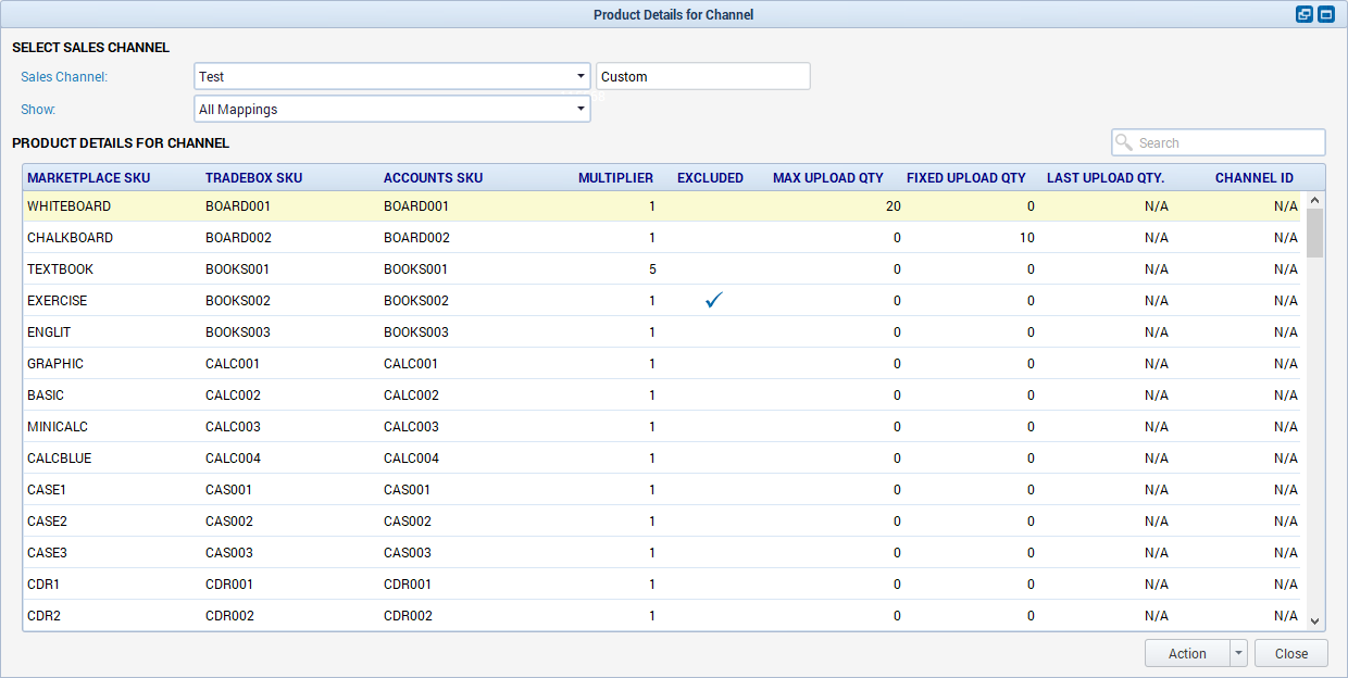 Note: The Accounts SKU column will not appear if you aren't linking Tradebox to an accounts package, or if you're only posting financial entries to your accounts for the selected channel.